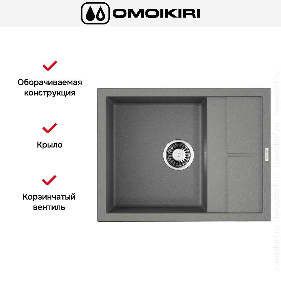 Обратите внимание на дизайнерские отличия мойки Омойкири, которые помогут в создании идеальной кухни в вашем доме. Она выполнена в цвете Серый Ленинград. Крыло, расположенное является дополнительным рабочим пространством, на котором можно сушить посуду, разделывать мясо и нарезать овощи.