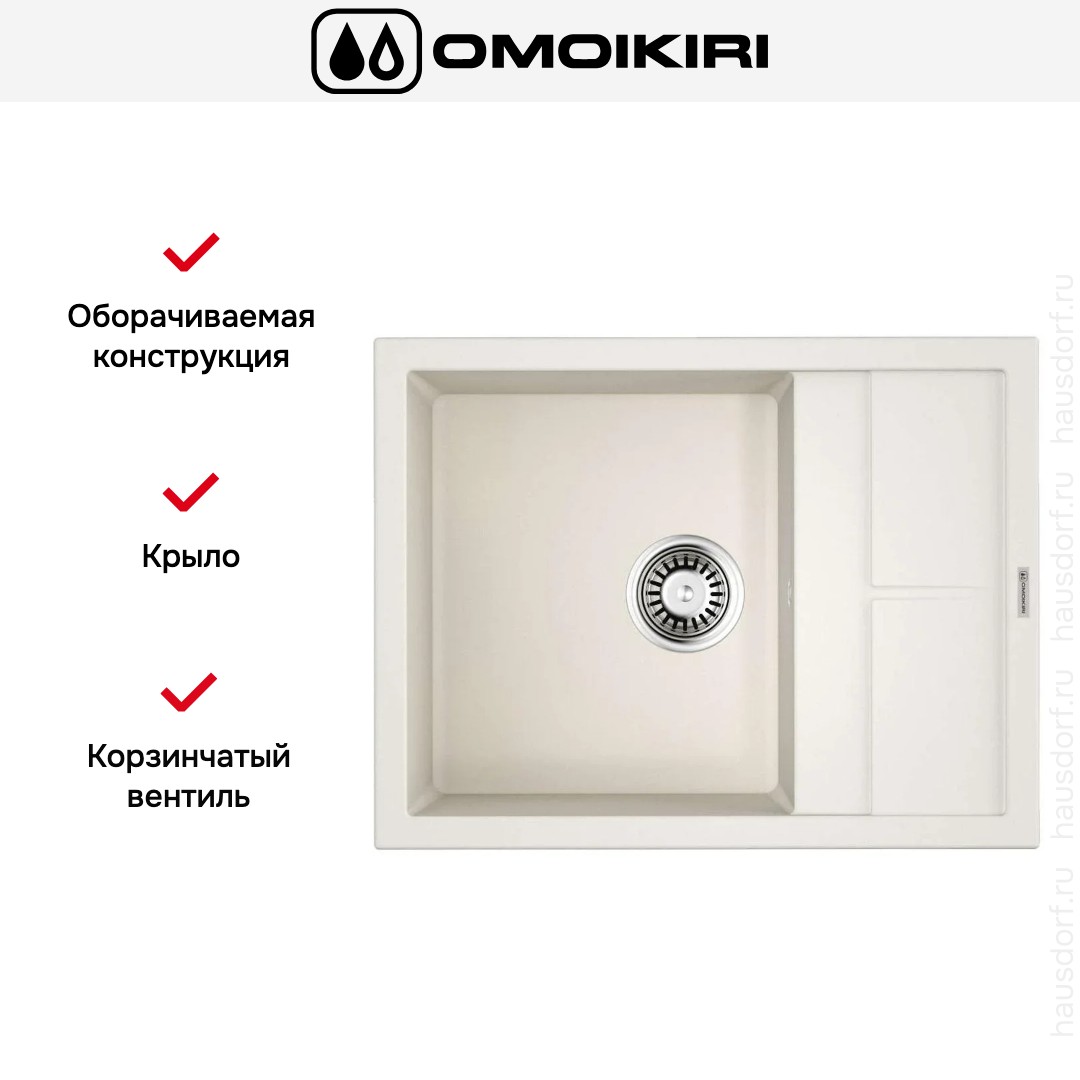 Обратите внимание на дизайнерские отличия мойки Омойкири, которые помогут в создании идеальной кухни в вашем доме. Она выполнена в цвете белый. Крыло, расположенное является дополнительным рабочим пространством, на котором можно сушить посуду, разделывать мясо и нарезать овощи.