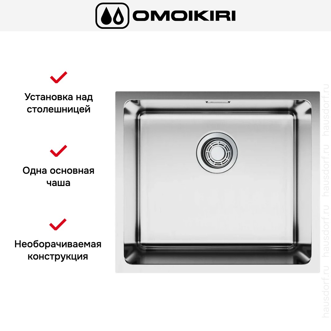 Мойка OMOIKIRI Tadzava 49-U I — врезная квадратная модель из нержавеющей стали, рассчитанная на установку в кухонный модуль шириной 60 см. Это изделие выполнено по цельнотянутой технологии, что даёт плотную однородную структуру и повышенную прочность корпуса. Квадратная форма при компактных внешних габаритах 4944 см обеспечивает рациональное использование рабочей поверхности.