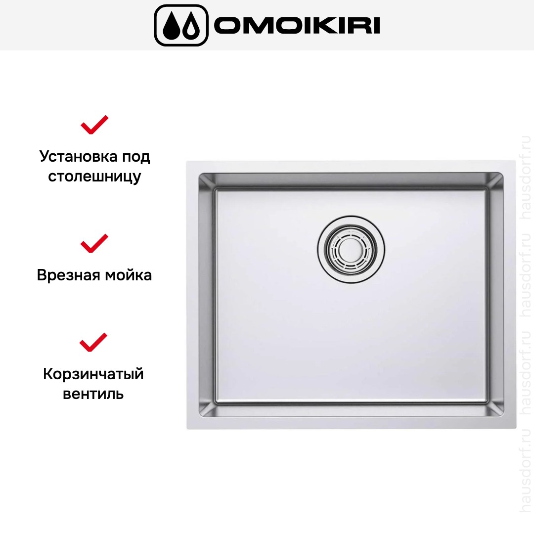 Врезная мойка Omoikiri — отличный выбор для тех, кто хочет создать гармоничное кухонное пространство с полностью вписывающейся в него сантехникой. Преимущество такой конструкции — плотное прилегание к столешнице, так как вырез подбирается индивидуально под габариты модели. Под стыки не попадает вода, поэтому срок службы значительно увеличивается, пользоваться ей удобно и приятно. Данная модель имеет стандартную форму, поэтому подходит большинству пользователей. Устанавливается под столешницу, благодаря чему не остается стыков, в которых копились бы загрязнения, а также увеличивается рабочая глубина. Устанавливается над столешницей: это самый простой способ монтажа, зачастую с ним можно справиться даже без специалистов, главное — правильно рассчитать размеры ниши.