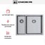 Корпус изготовлен методом цельнотянутой штамповки, поэтому чаши получаются без видимых сварных швов и с ровными стенками. Это повышает прочность и эстетичность, а также снижает вероятность накопления грязи в стыках. Толщина материала 1 мм и общий вес около 4,65 кг делают изделие достаточно лёгким для монтажа, но при правильной установке оно демонстрирует высокую жёсткость и долговечность. Встроенный слой шумоподавления уменьшает вибрации и гул при работе воды и посуды, что улучшает акустический комфорт на кухне.