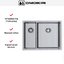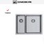 Монтаж возможен как над столешницей, так и под неё, что даёт свободу выбора оформления. Для установки рассчитана база 60 см; монтажное отверстие может быть 56×42 см или 56.4×42.4 см, поэтому важно заранее сверить размеры столешницы. Изделие не оборачиваемое, то есть ориентация фиксирована — стоит определиться с расположением основной и дополнительной чаш при планировании кухни. Радиус скругления 1 см обеспечивает оптимальный баланс между компактностью и удобством очистки углов.
