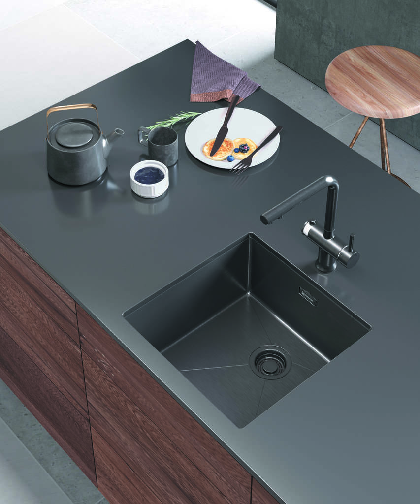 под столешницу — мойка расположена чуть ниже рабочей поверхности для лучшей герметизации;