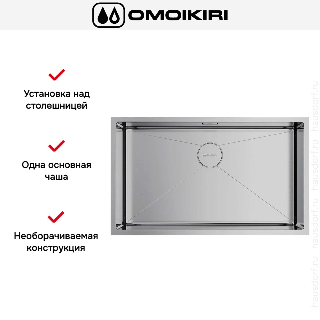 Обратите внимание на дизайнерские отличия мойки Омойкири, которые помогут в создании идеальной кухни в вашем доме. Она выполнена в цвете нержавеющая сталь. Основной материал — нержавеющая сталь, он гарантирует надежность и долгие годы службы без повреждений.