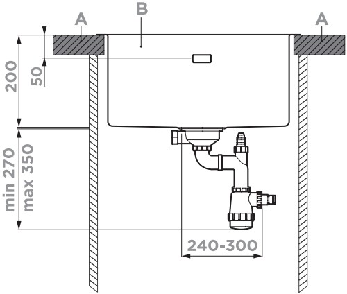 База — это шкаф, в который вы планируете устанавливать мойку. Данный параметр обозначает минимальную ширину между боковые стенками. Именно столько нужно, чтобы правильно разместить всю сантехнику.