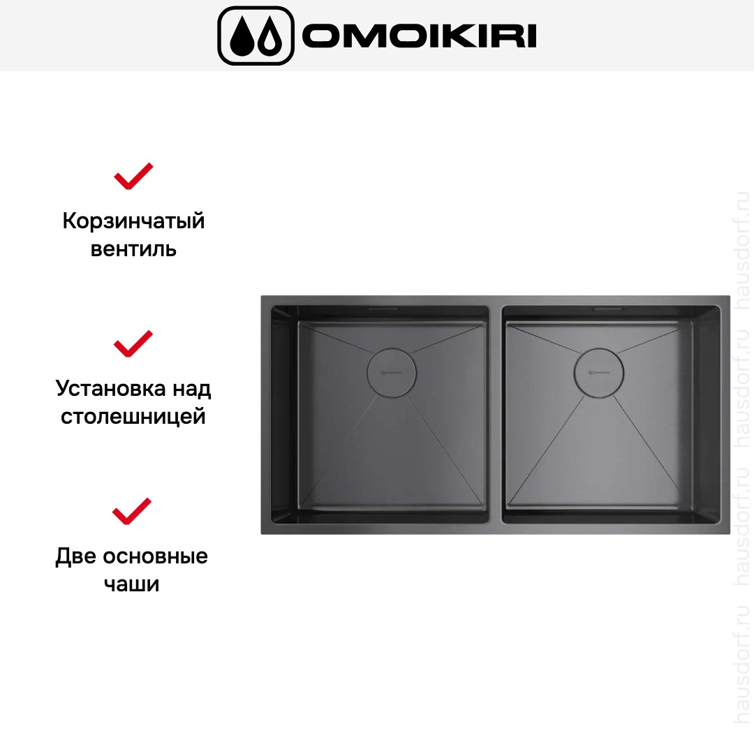 Обратите внимание на дизайнерские отличия мойки Омойкири, которые помогут в создании идеальной кухни в вашем доме. Она выполнена в цвете вороненая сталь. Основной материал — нержавеющая сталь, он гарантирует надежность и долгие годы службы без повреждений.