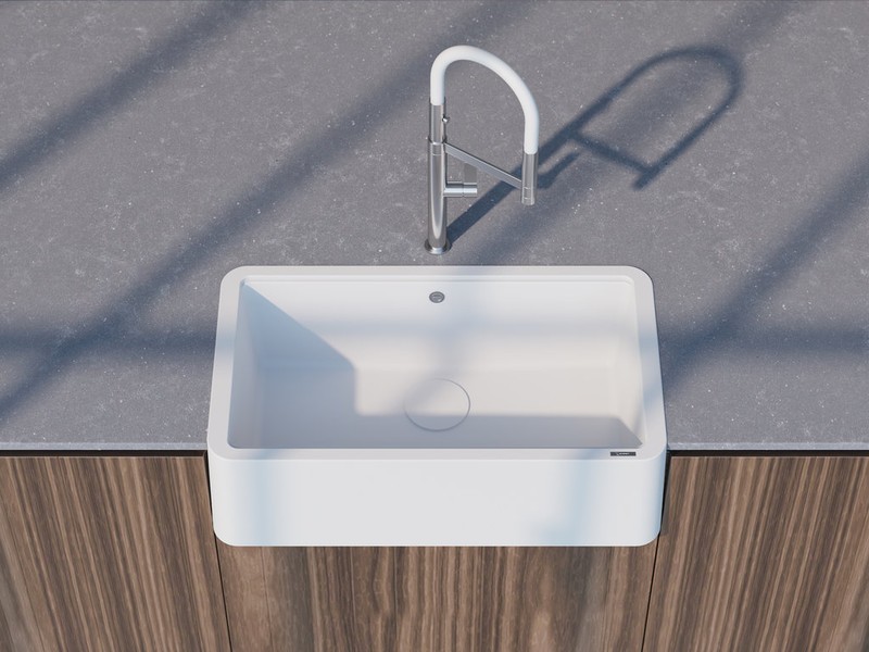 Корпус выполнен из TetoGranit — прочного гранитного композита, полученного методом литья. Он сочетает в себе стойкость к механическим повреждениям и эстетичный матовый оттенок белоснежного цвета. Мойка из этого материала гарантированно сохраняет свой первоначальный цвет в течение всего срока службы. Благодаря плотной структуре поверхность исключительно гладкая и ровная. Она не требует сложного ухода, легко моется и чистится.