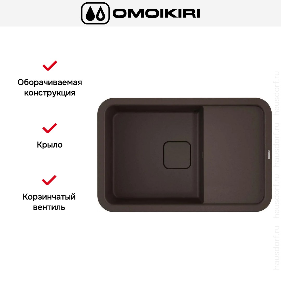 Обратите внимание на дизайнерские отличия мойки Омойкири, которые помогут в создании идеальной кухни в вашем доме. Она выполнена в цвете темный шоколад. Крыло, расположенное является дополнительным рабочим пространством, на котором можно сушить посуду, разделывать мясо и нарезать овощи.