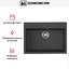 Минималистичная прямоугольная раковина черного цвета: пропорции 68×50 см задают четкую геометрию, которая легко вписывается в разные кухонные планы. Установка над столешницей делает контур заметным и визуально выделяет рабочую зону, создавая заметную границу между мойкой и поверхностью. Бортик защищает от брызг, а в задней части, где он более широк, служит в качестве полки ля размещения моющих средств.