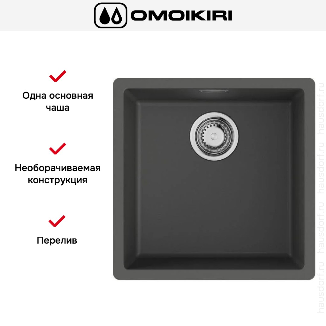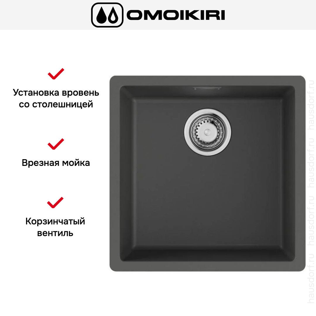 Врезная мойка Omoikiri — отличный выбор для тех, кто хочет создать гармоничное кухонное пространство с полностью вписывающейся в него сантехникой. Преимущество такой конструкции — плотное прилегание к столешнице, так как вырез подбирается индивидуально под габариты модели. Под стыки не попадает вода, поэтому срок службы значительно увеличивается, пользоваться ей удобно и приятно. Данная модель имеет стандартную форму, поэтому подходит большинству пользователей. Устанавливается вровень со столешницей, благодаря чему не остается стыков, в которых копились бы загрязнения.