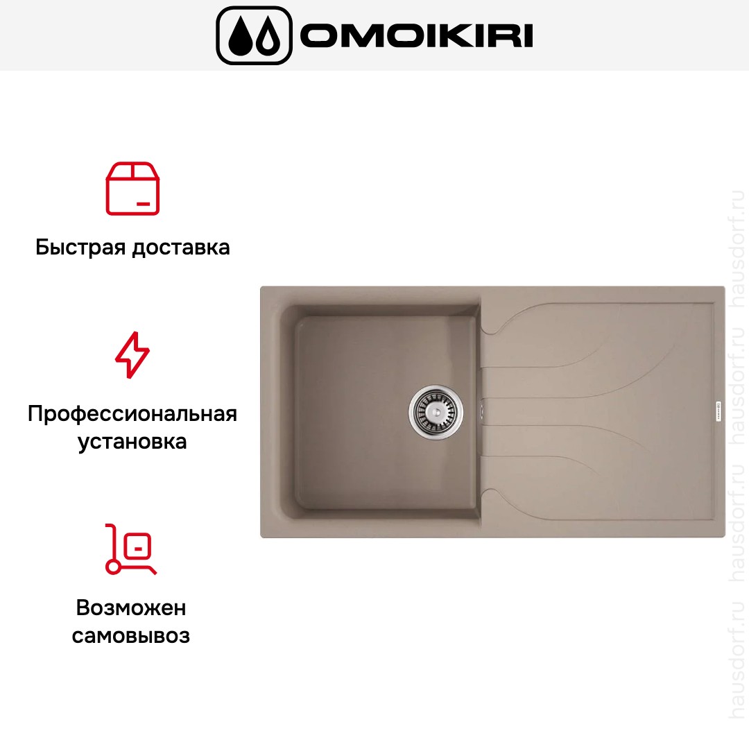 Накладная мойка Omoikiri — отличный выбор для тех, кто хочет создать гармоничное пространство с удобной сантехникой. простой в установке. Преимущество такой конструкции: легко подобрать практически к любой кухне и не придется демонтировать вместе с тумбой при ремонте или перестановке остальной мебели. Данная модель имеет стандартную форму, поэтому подходит большинству пользователей. Устанавливается над столешницей: это самый простой способ монтажа, зачастую с ним можно справиться даже без специалистов, главное — правильно рассчитать размеры ниши.
