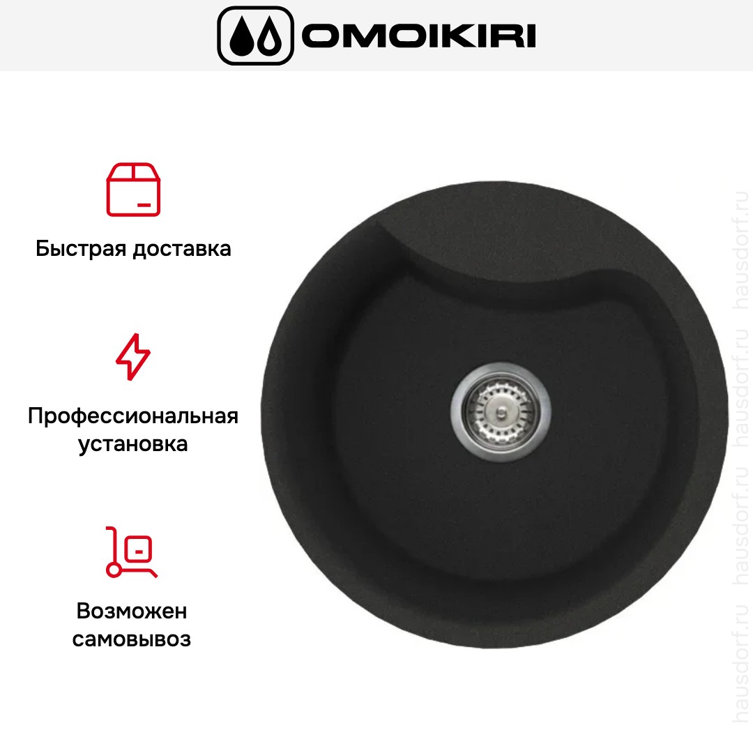 Мойка Omoikiri Yasugata 48R BL — накладная круглая модель в черном цвете из прочного композитного материала TetoGranit. Ее лаконичная форма и матовая глубина поверхности создают сдержанную элегантность в любой кухонной зоне. Круглый силуэт смягчает общую геометрию интерьера и будет выгодно контрастировать с прямоугольной столешницей.