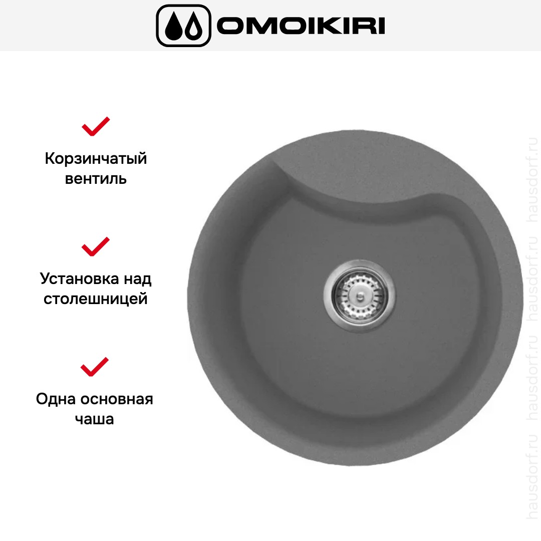Накладная мойка Omoikiri — отличный выбор для тех, кто хочет создать гармоничное пространство с удобной сантехникой. простой в установке. Преимущество такой конструкции: легко подобрать практически к любой кухне и не придется демонтировать вместе с тумбой при ремонте или перестановке остальной мебели. Данная модель имеет скругленный контур, поэтому выбор тумбочки для нее потребует дополнительного внимания. Устанавливается над столешницей: это самый простой способ монтажа, зачастую с ним можно справиться даже без специалистов, главное — правильно рассчитать размеры ниши.