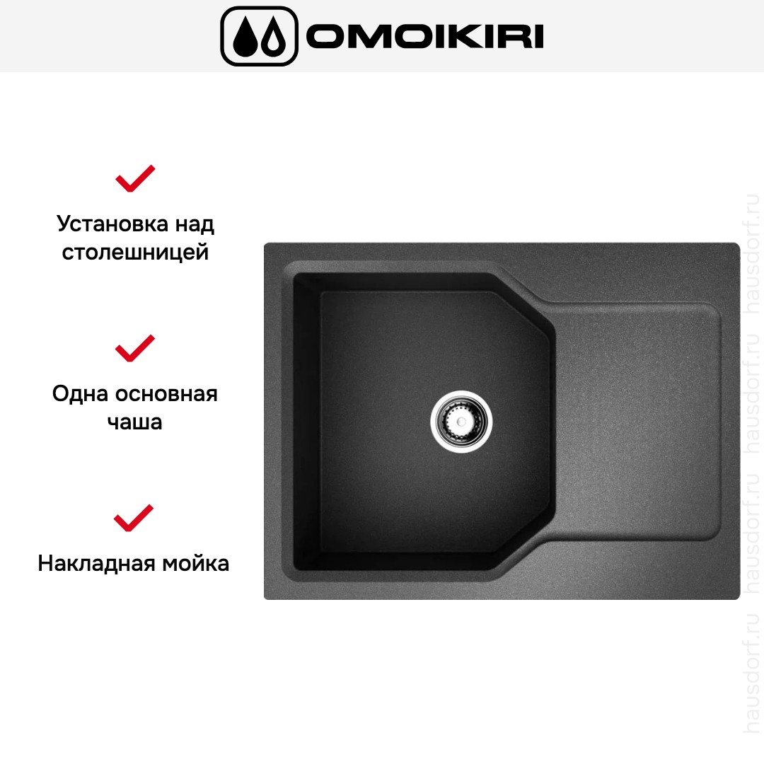 Обратите внимание на дизайнерские отличия мойки Омойкири, которые помогут в создании идеальной кухни в вашем доме. Она выполнена в цвете черный. Крыло, расположенное слева или справа, является дополнительным рабочим пространством, на котором можно сушить посуду, разделывать мясо и нарезать овощи.
