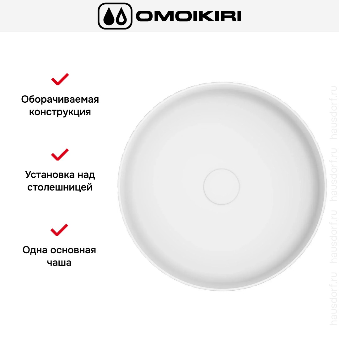 Накладная мойка Omoikiri — отличный выбор для тех, кто хочет создать гармоничное пространство с удобной сантехникой. простой в установке. Преимущество такой конструкции: легко подобрать практически к любой кухне и не придется демонтировать вместе с тумбой при ремонте или перестановке остальной мебели. Данная модель имеет скругленный контур, поэтому выбор тумбочки для нее потребует дополнительного внимания. Устанавливается над столешницей: это самый простой способ монтажа, зачастую с ним можно справиться даже без специалистов, главное — правильно рассчитать размеры ниши.