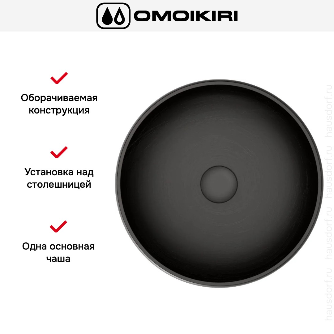 Накладная мойка Omoikiri — отличный выбор для тех, кто хочет создать гармоничное пространство с удобной сантехникой. простой в установке. Преимущество такой конструкции: легко подобрать практически к любой кухне и не придется демонтировать вместе с тумбой при ремонте или перестановке остальной мебели. Данная модель имеет скругленный контур, поэтому выбор тумбочки для нее потребует дополнительного внимания. Устанавливается над столешницей: это самый простой способ монтажа, зачастую с ним можно справиться даже без специалистов, главное — правильно рассчитать размеры ниши.