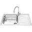 Ширина прямоугольной врезной модели с одной чашей составляет 86 см. Необорачиваемая конструкция предусматривает расположение крыла справа. Желобки на поверхности крыла обеспечивают удобный сток воды. Сифон с возможностью подключения посудомоечной или стиральной машины входит в комплект.