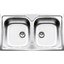 Модель монтируется вровень со столешницей, так что возникает ровная поверхность, легкая в уходе, а под бортиком не скапливается грязь. Закругленные углы в обеих чашах также способствуют удобной очистке. Для защиты от засоров и удержания крупных остатков пищи предусмотрен корзинчатый вентиль.
