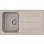 Общая ширина мойки составляет 86 см. Прямоугольная врезная модель монтируется вровень со столешницей, что позволяет протереть поверхность одним движением. Искусственный гранит оттенка «овес» не темнеет со временем, хорошо выдерживает высокие температуры и воздействие любых моющих средств.