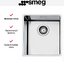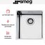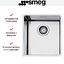 Мойка Smeg VFU34SFR — компактная и элегантная накладная модель, которая идеально подходит для небольших кухонь, барных зон, дачных домиков или вспомогательных рабочих поверхностей. Прямоугольная форма и габариты 38,2×44,2 см обеспечивают оптимальное сочетание экономии пространства и функциональности. Несмотря на скромные внешние размеры, глубина чаши в 44,2 см позволяет с комфортом выполнять базовые задачи — от мытья чашек и столовых приборов до ополаскивания овощей — и эффективно снижает разбрызгивание воды.