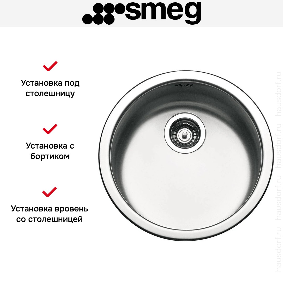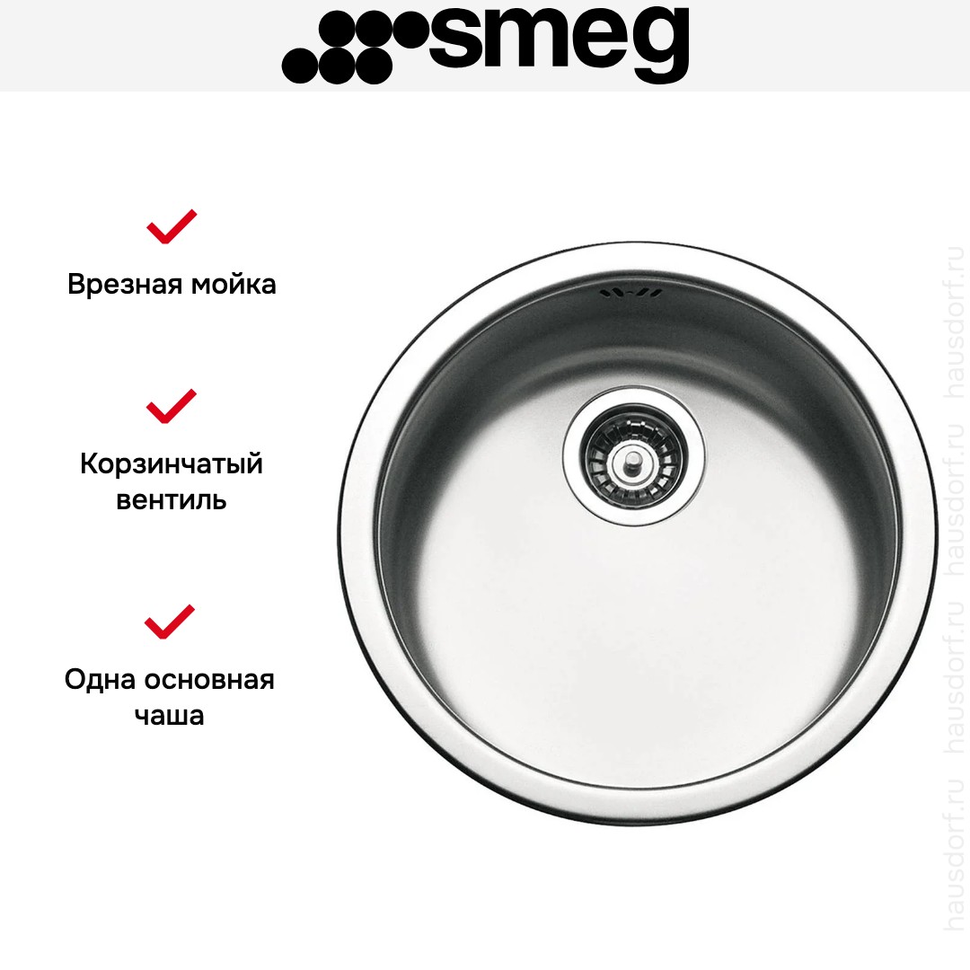 Мойка Smeg VFU43SFR — изысканная и функциональная врезная модель круглой формы, созданная для тех, кто ищет нестандартное решение, сочетающее в себе эстетику и практичность. Её диаметр составляет 43,5 см, что обеспечивает достаточную вместительность для решения повседневных задач — от мытья посуды до подготовки ингредиентов. Глубина чаши, равная диаметру, создаёт сбалансированное внутреннее пространство, эффективно предотвращая разбрызгивание воды и обеспечивая комфорт при использовании.