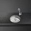 Круглая форма придаёт изделию особую выразительность, привнося в интерьер нотку современности и изящества. Такая форма органично сочетается как с классическими, так и с ультрасовременными кухонными гарнитурами, становясь центральным декоративным элементом рабочей зоны. Врезной способ установки обеспечивает плавный переход от столешницы к краю мойки, упрощает уход за поверхностью и подчёркивает целостность дизайна.