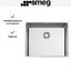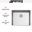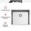 Мойка Smeg VR12S50 прямоугольной формы шириной 54 см может устанавливаться двумя способами: вровень со столешницей либо под столешницу. Она изготовлена из нержавеющей стали AISI304, способной выдерживать высокие температуры и не тускнеющей при воздействии самых агрессивных моющих средств. Глубина чаши составляет 20 см — в ней поместится достаточно большая посуда и продукты. Фиксирующие зажимы для легкого монтажа при установке мойки Смег VR12S50 под столешницу входят в комплект.