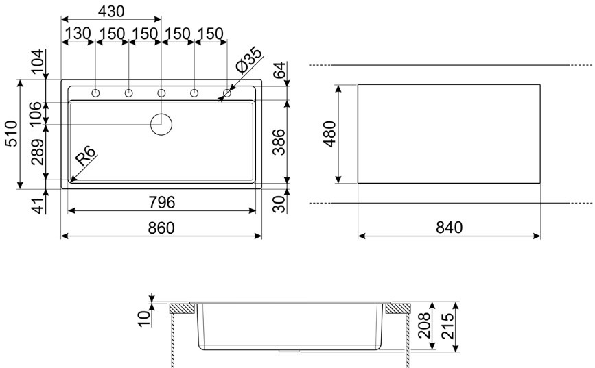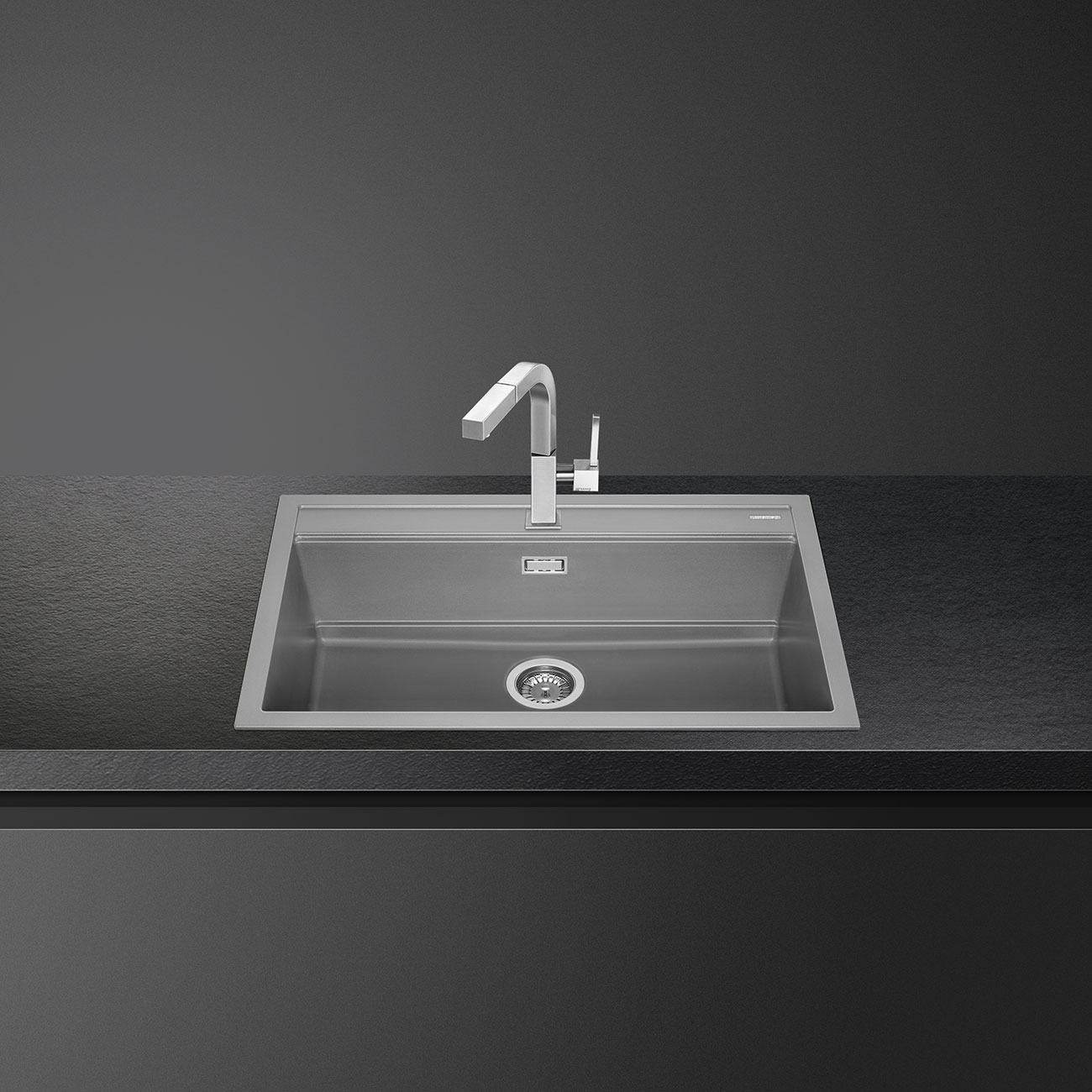 Мойка Smeg VSGX860CT — просторная и функциональная врезная модель, созданная для кухонь, где важны эргономика, вместительность и эстетическая выразительность. Прямоугольная форма и внушительные габариты — 86×51 см — обеспечивают максимальный комфорт при выполнении широкого спектра задач: от мытья крупногабаритной посуды и противней до подготовки ингредиентов для приготовления блюд. Глубина чаши 51 см эффективно снижает разбрызгивание воды, сохраняя чистоту и порядок на рабочей поверхности.
