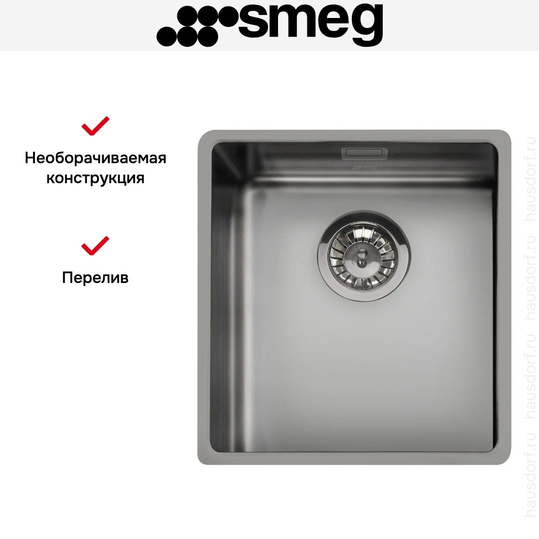 Мойка Smeg VSTR34DKX — компактная и стильная встраиваемая модель, разработанная для современных интерьеров, в которых важны лаконичность, функциональность и выразительный дизайн. Прямоугольная форма и габариты 38,2×44,2 см обеспечивают оптимальное сочетание экономии пространства и практичности. Несмотря на скромную ширину, глубина чаши в 44,2 см позволяет с комфортом выполнять повседневные задачи — от мытья посуды до ополаскивания продуктов — и эффективно снижает разбрызгивание воды.