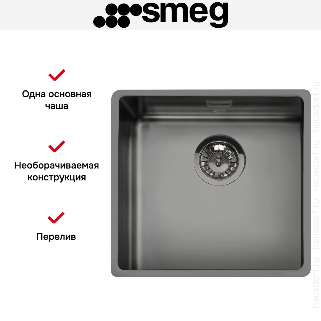 Мойка Smeg VSTR50DKX — стильная и функциональная врезная модель, созданная для современных интерьеров, в которых важны лаконичность, надёжность и эстетическая выразительность. Её прямоугольная форма и габариты 54,2×44,2 см обеспечивают оптимальное сочетание вместительности и компактности, позволяя с комфортом выполнять повседневные задачи — от мытья посуды до подготовки ингредиентов. Глубина чаши 44,2 см эффективно снижает разбрызгивание воды, сохраняя чистоту и порядок на рабочей поверхности.