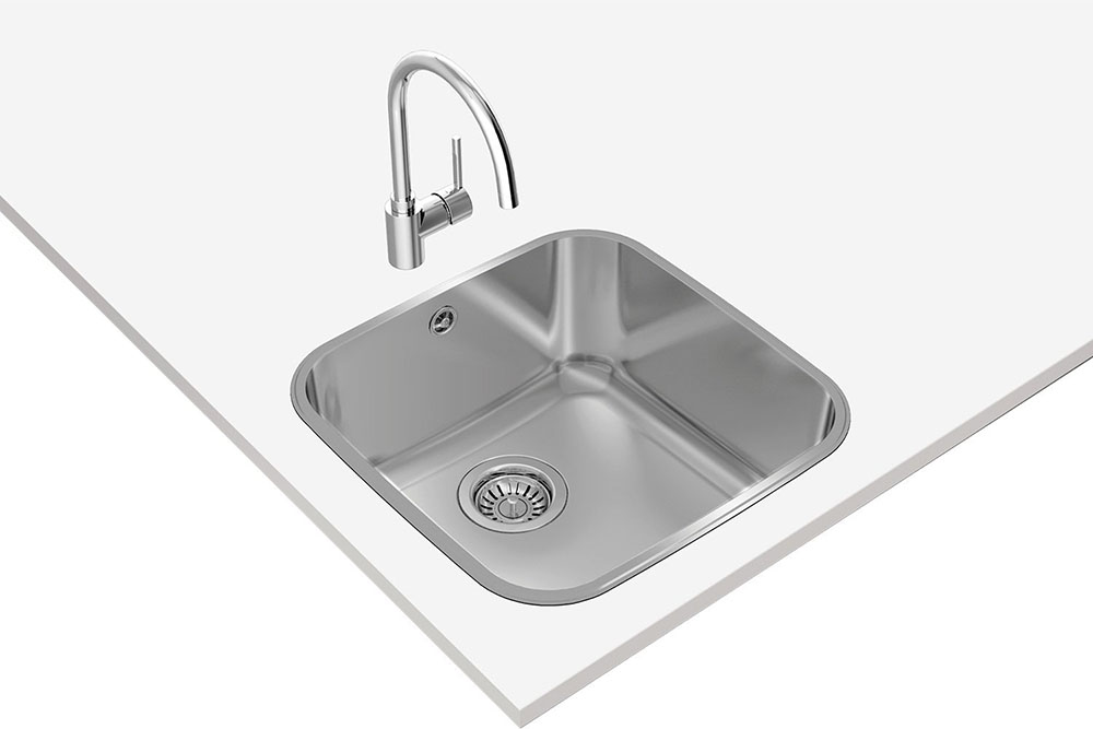 Данная модель имеет стандартную форму, поэтому подходит большинству пользователей. Устанавливается под столешницу, благодаря чему не остается стыков, в которых копились бы загрязнения, а также увеличивается рабочая глубина.