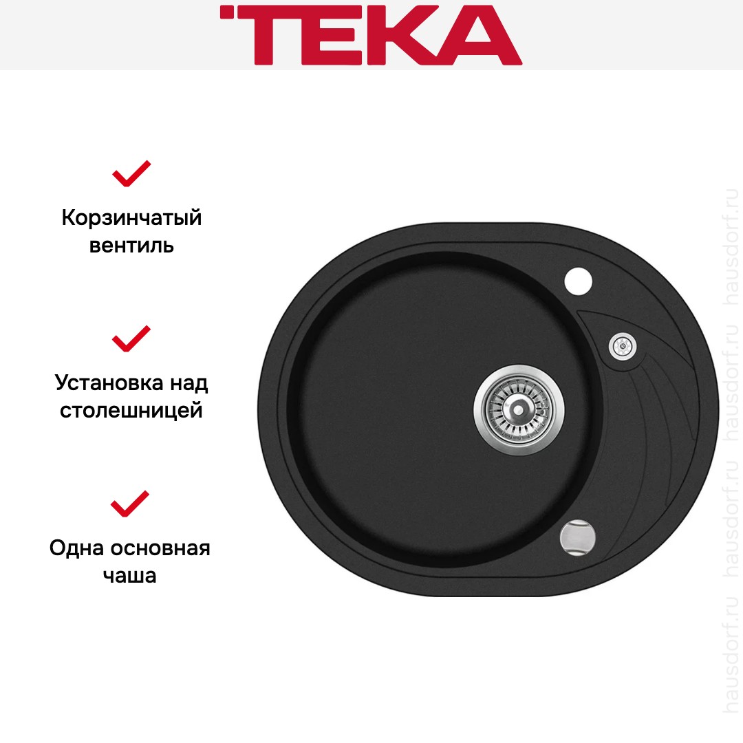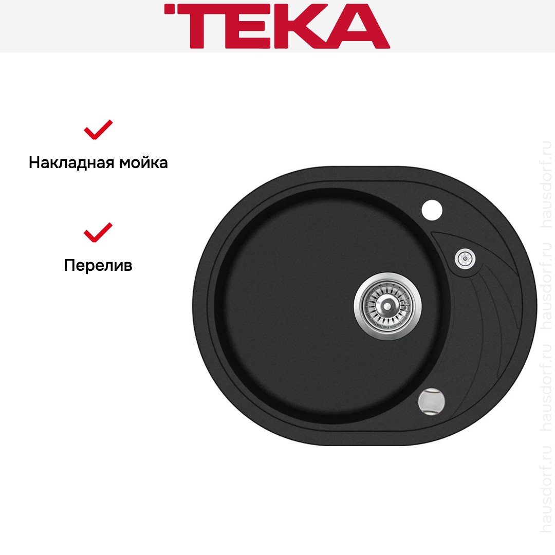Мойка Teka Clave 45 S TQ Black Metallic — накладная овальная модель с лаконичным силуэтом и функциональным крылом для удобства работы. Она разработана для установки над столешницей и займет немного места, благодаря чему оптимально подходит для компактной кухонной мебели.