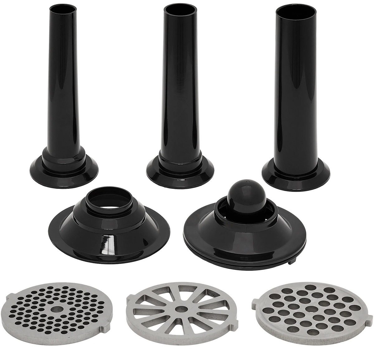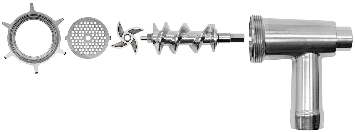 Конструкция продумана с учётом удобства: все съёмные элементы легко разбираются и моются, а металлические решётки и ножи отличаются долговечностью и сохраняют остроту даже после многочисленных циклов работы. Благодаря комплекту насадок можно не только измельчать мясо, но и готовить домашние колбасы, кеббе, тесто для пельменей или овощные заготовки.