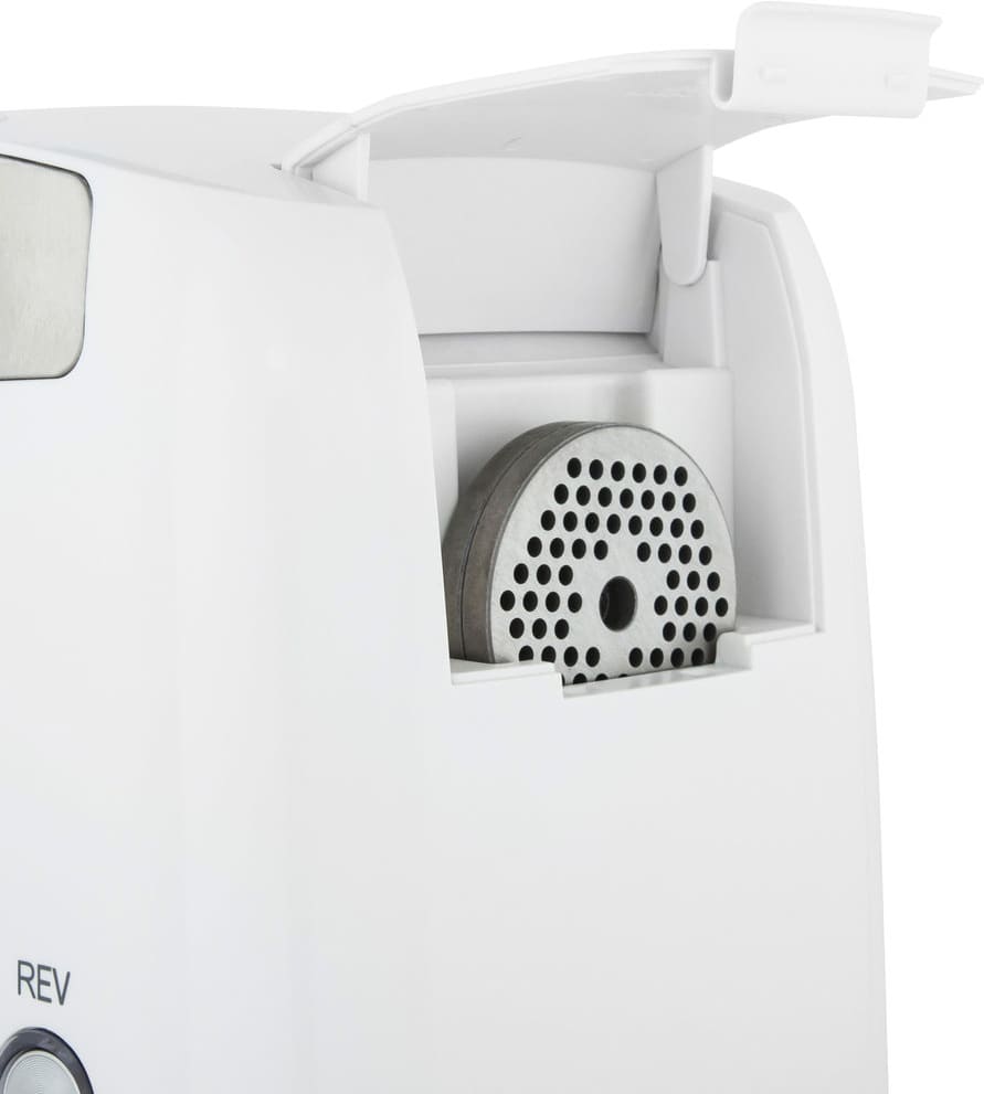 Белоснежное исполнение корпуса придаёт технике аккуратный, лаконичный вид, гармонично дополняя любой интерьер — от скандинавского минимализма до классической кухни. Габариты — всего 26,5 см в высоту, 17 см в ширину и 27 см в глубину — позволяют разместить мясорубку даже на небольшой столешнице, а вес в 3,58 кг обеспечивает устойчивость без излишней громоздкости.