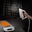Профессиональный утюг подсоединен к емкости с водой, расположенной в корпусе с подставкой. Вы можете использовать такой утюг как на горизонтальной доске для глажки, так и при обработке вещей на вешалке.