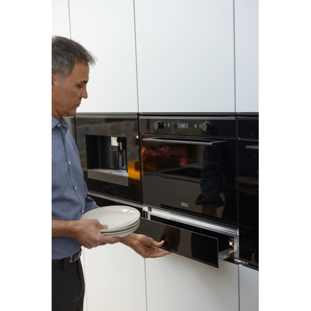 Подогреватели посуды, в отличие от многих других бытовых приборов, выпускаются преимущественно во встраиваемом варианте: модели соло распространены гораздо меньше. Встраиваемые модели имеют свои особенности — прежде всего это место установки. Чаще всего подогреватели устанавливаются в колонну под кофемашинами, чтобы можно было сразу воспользоваться извлеченной из камеры подогретой чашкой. Их могут устанавливать также под компактными духовыми шкафами: блюдо сразу помещают на подогретую тарелку. Благодаря фасаду без ручки и бесшовному дизайну прибор воспринимается как часть колонны.