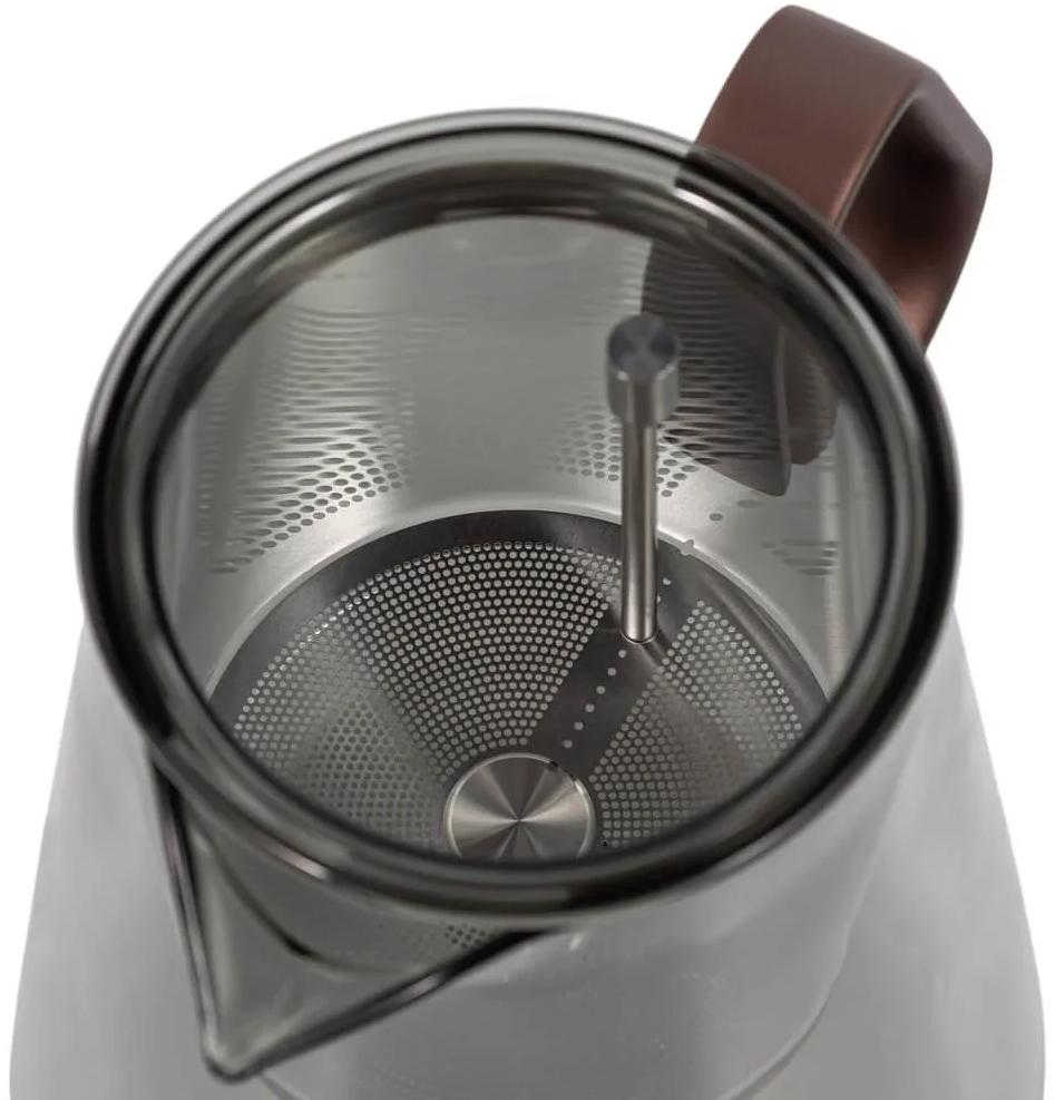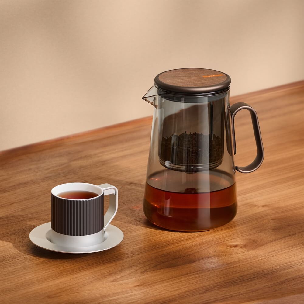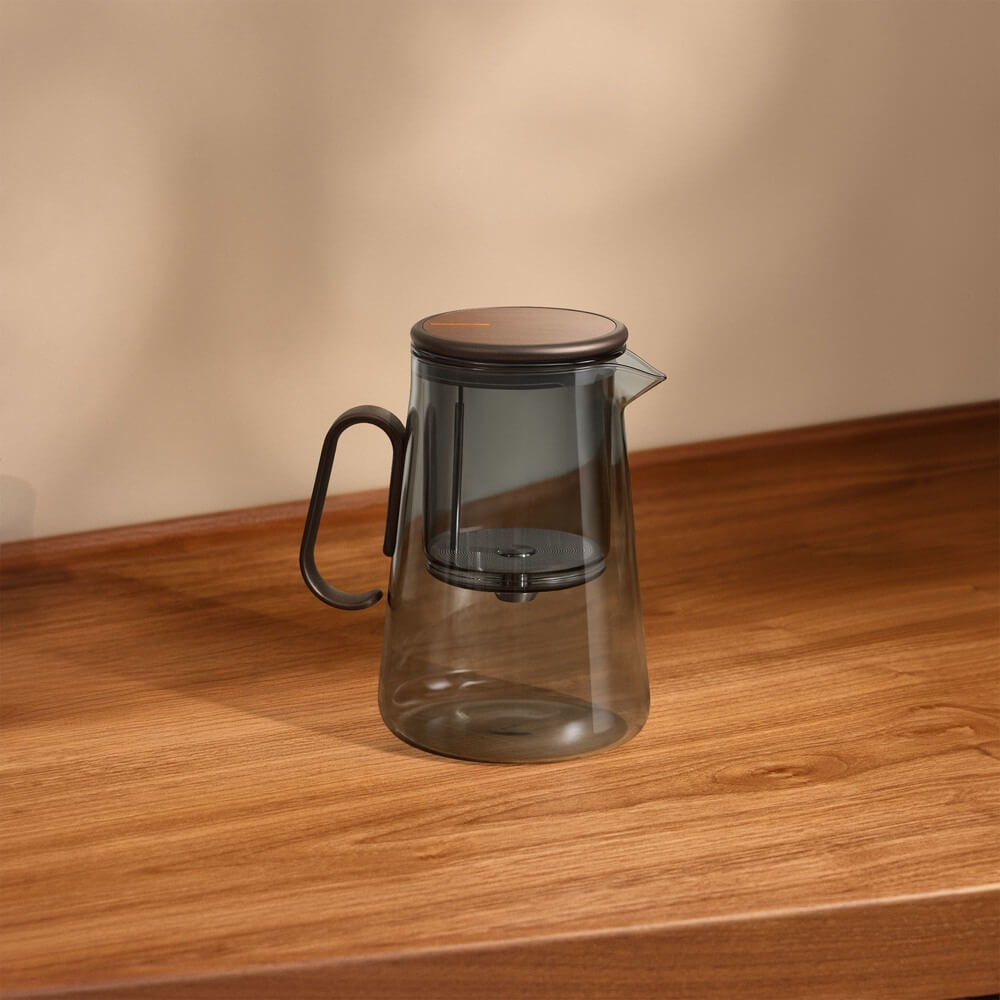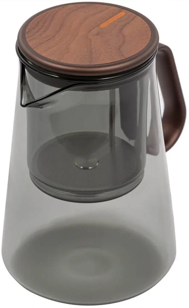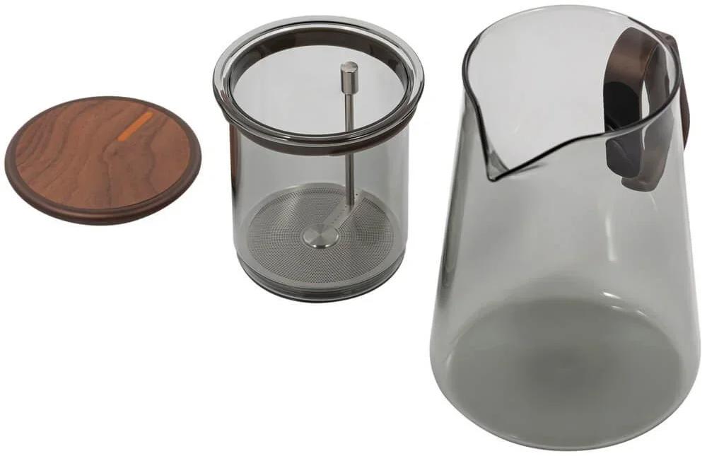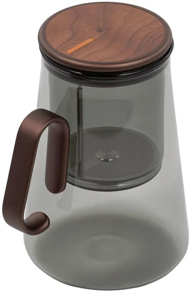 Каждая деталь подобрана для воплощения эстетичной чайной церемонии: тонированное стекло, ручка из тактильно приятного алюминия и крышка, отделанная натуральным шпоном американского ореха с уникальным рисунком.