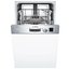 Встраиваемая модель Бош отлично впишется в любой интерьер, главное — правильно выбрать место, чтобы подвести коммуникации. Обратите внимание: в комплекте не идет фасад, его необходимо установить самостоятельно. Устанавливается в нишу неполностью, остается открытой панель управления. Имеет уменьшенную ширину — благодаря этому поместится даже на очень маленькой кухне. В камеру можно загрузить ограниченное число комплектов: 9 шт. Комплектом считается набор посуды на одного человека, который нужен для полноценного приема пищи: глубокая и плоская тарелки, тарелка для салата, блюдце под чашку, сама чашка, ложка и вилка.