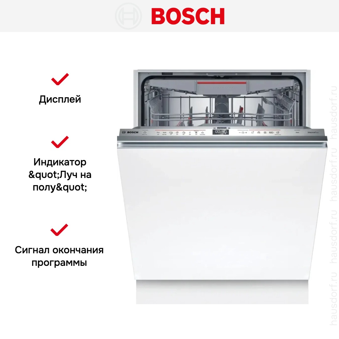 Встраиваемая модель Бош отлично впишется в любой интерьер, главное — правильно выбрать место, чтобы подвести коммуникации. Устанавливается в нишу целиком, полностью закрывается декоративной панелью. Обратите внимание: в комплекте не идет фасад, его необходимо установить самостоятельно. Имеет стандартные размеры, поэтому может не поместиться на очень маленькой кухне. В камеру можно загрузить ограниченное число комплектов: 14 шт. Комплектом считается набор посуды на одного человека, который нужен для полноценного приема пищи: глубокая и плоская тарелки, тарелка для салата, блюдце под чашку, сама чашка, ложка и вилка.