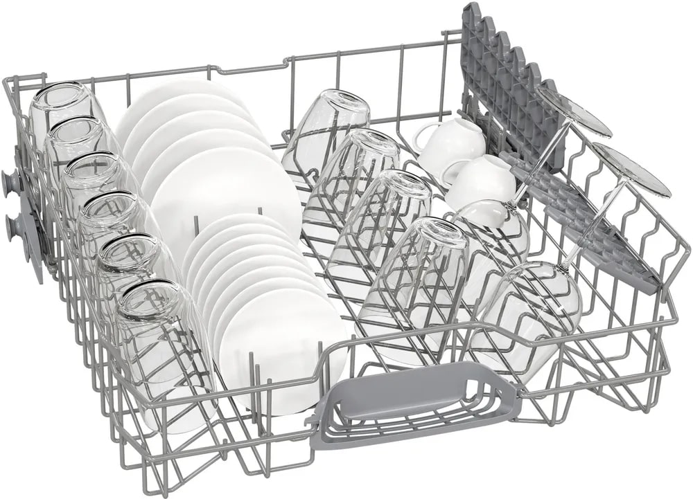 Класс энергопотребления A++ обеспечивает разумный расход электроэнергии, а система AquaStop гарантирует полную защиту от протечек, что особенно ценно при встраивании в мебель. Внутреннее пространство продумано с учётом эргономики: верхняя корзина регулируется по высоте, а специальные держатели надёжно фиксируют бокалы и хрупкую керамику. Программа «Интенсивная сушка» эффективно устраняет остатки влаги, оставляя столовые приборы и стеклянные изделия без разводов.