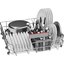 Встраиваемая модель Бош отлично впишется в любой интерьер, главное — правильно выбрать место, чтобы подвести коммуникации. Устанавливается в нишу целиком, полностью закрывается декоративной панелью. Обратите внимание: в комплекте не идет фасад, его необходимо установить самостоятельно. Имеет стандартные размеры, поэтому может не поместиться на очень маленькой кухне. В камеру можно загрузить ограниченное число комплектов: 13 шт. Комплектом считается набор посуды на одного человека, который нужен для полноценного приема пищи: глубокая и плоская тарелки, тарелка для салата, блюдце под чашку, сама чашка, ложка и вилка.