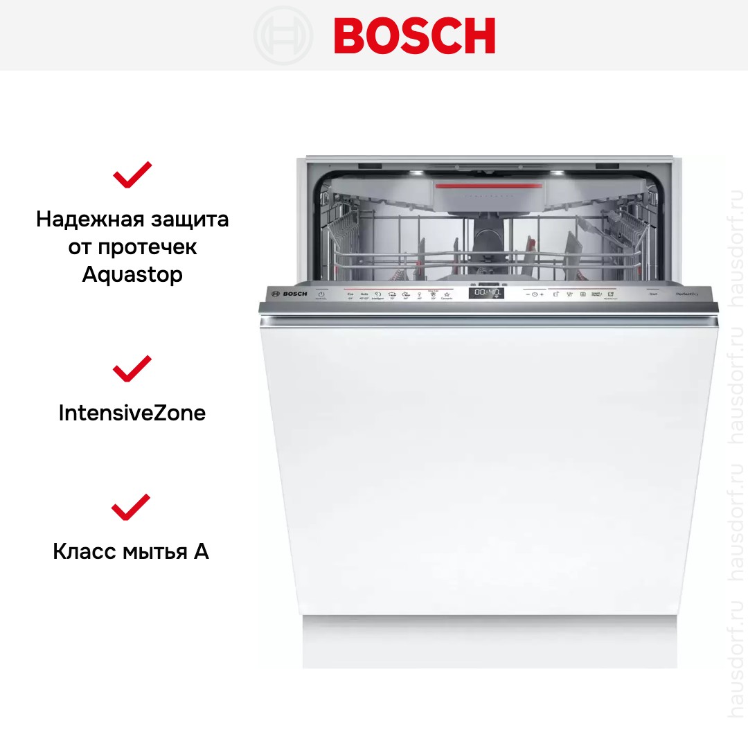 Посудомоечная машина Bosch SMV6ZCX16E — встраиваемая полноразмерная модель, создающая эффектный и аккуратный кухонный гарнитур за счёт полностью скрываемой двери. Высота с регулируемой панелью 81.5-87.5 см позволяет точно подгонять прибор под нишу, а стандартные ширина и глубина 59.8×55 см укладываются в типичные кухонные планы. Панель управления из нержавеющей стали остаётся видимой и служит стильным акцентом, при этом основной внешний вид формируется вашим фасадом. Такое решение подходит тем, кто ценит единый интерьер без лишних деталей.
