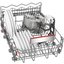 Внутреннее пространство продумано с акцентом на эргономику: верхняя корзина регулируется по высоте, а специальные держатели надёжно фиксируют бокалы, чашки и хрупкую керамику. Функция ExtraDry усиливает сушку, оставляя стеклянные и пластиковые изделия полностью сухими без разводов. Режим SpeedPerfect+ сокращает продолжительность цикла на 65%, сохраняя безупречный результат даже при интенсивных загрязнениях.