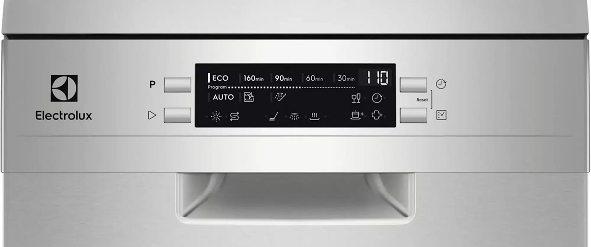Отдельностоящая модель Электролюкс отлично впишется в кухонный интерьер, главное — правильно выбрать место, чтобы подвести коммуникации. Имеет уменьшенную ширину — благодаря этому поместится даже на очень маленькой кухне. В камеру можно загрузить ограниченное число комплектов: 10 шт. Комплектом считается набор посуды на одного человека, который нужен для полноценного приема пищи: глубокая и плоская тарелки, тарелка для салата, блюдце под чашку, сама чашка, ложка и вилка.