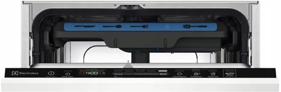 Встраиваемая модель Электролюкс отлично впишется в любой интерьер, главное — правильно выбрать место, чтобы подвести коммуникации. Устанавливается в нишу целиком, полностью закрывается декоративной панелью. Обратите внимание: в комплекте не идет фасад, его необходимо установить самостоятельно. Имеет уменьшенную ширину — благодаря этому поместится даже на очень маленькой кухне. В камеру можно загрузить ограниченное число комплектов: 10 шт. Комплектом считается набор посуды на одного человека, который нужен для полноценного приема пищи: глубокая и плоская тарелки, тарелка для салата, блюдце под чашку, сама чашка, ложка и вилка.