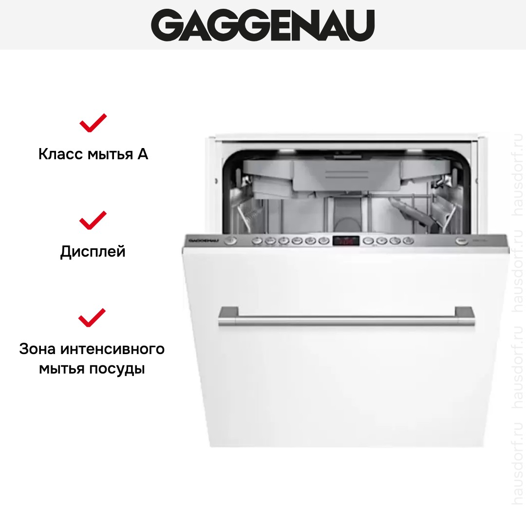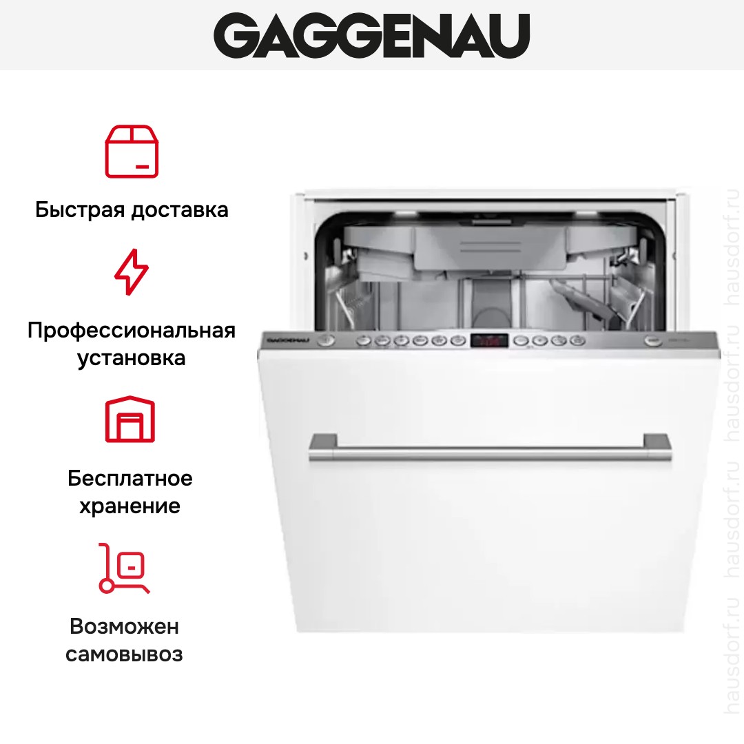 Встраиваемая модель Гаггенау отлично впишется в любой интерьер, главное — правильно выбрать место, чтобы подвести коммуникации. Устанавливается в нишу целиком, полностью закрывается декоративной панелью. Обратите внимание: в комплекте не идет фасад, его необходимо установить самостоятельно. Имеет уменьшенную ширину — благодаря этому поместится даже на очень маленькой кухне. В камеру можно загрузить ограниченное число комплектов: 10 шт. Комплектом считается набор посуды на одного человека, который нужен для полноценного приема пищи: глубокая и плоская тарелки, тарелка для салата, блюдце под чашку, сама чашка, ложка и вилка.