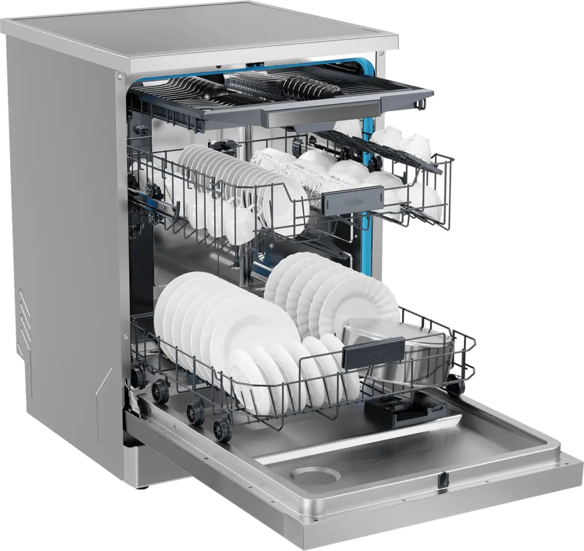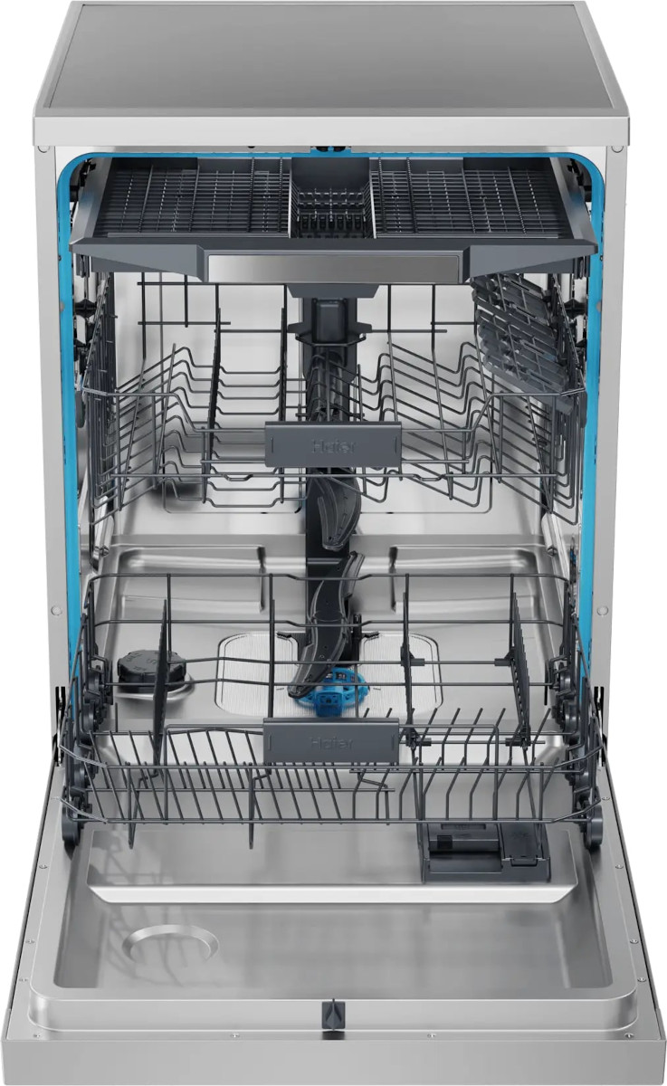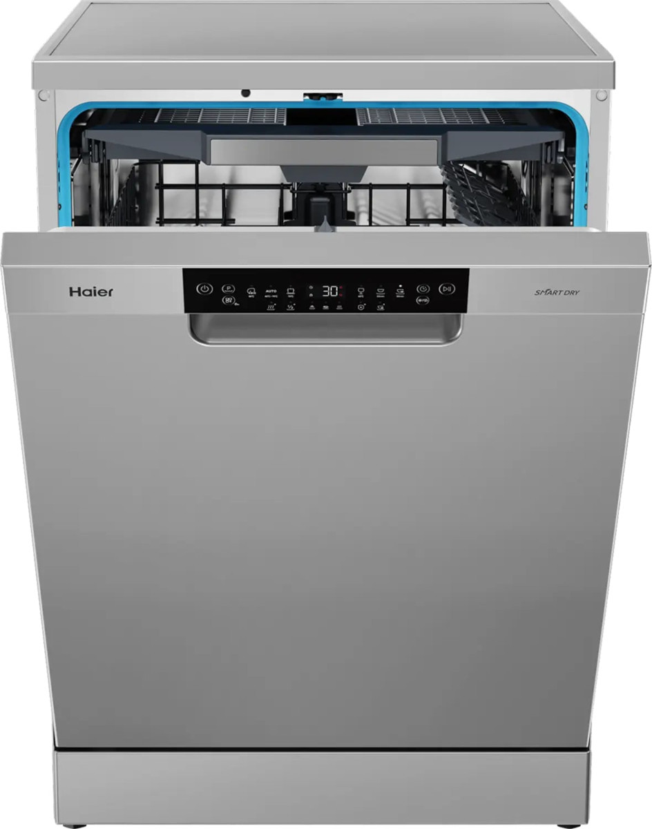 Отдельностоящая модель Хайер отлично впишется в кухонный интерьер, главное — правильно выбрать место, чтобы подвести коммуникации. Имеет стандартные размеры, поэтому может не поместиться на очень маленькой кухне. В камеру можно загрузить ограниченное число комплектов: 15 шт. Комплектом считается набор посуды на одного человека, который нужен для полноценного приема пищи: глубокая и плоская тарелки, тарелка для салата, блюдце под чашку, сама чашка, ложка и вилка.