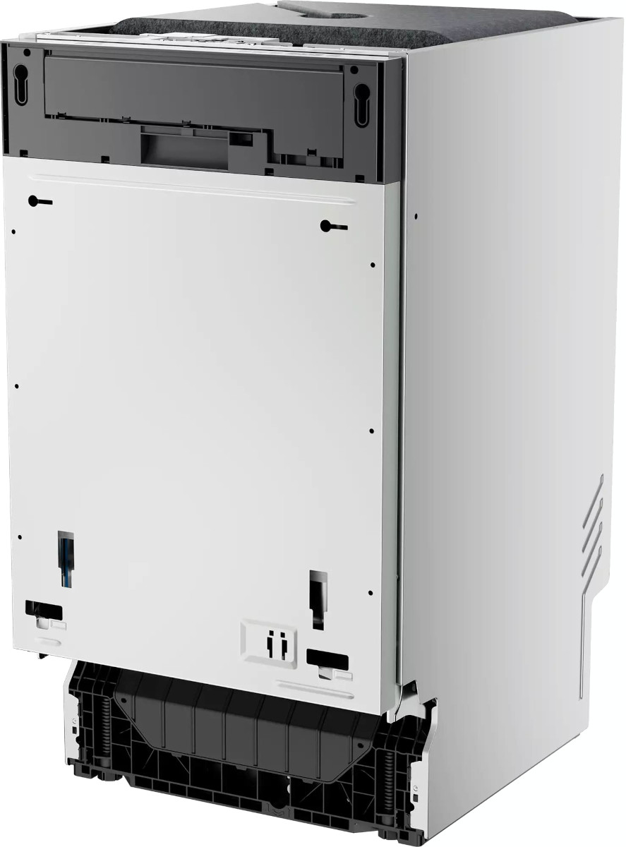 Встраиваемая модель Хайер отлично впишется в любой интерьер, главное — правильно выбрать место, чтобы подвести коммуникации. Устанавливается в нишу целиком, полностью закрывается декоративной панелью. Обратите внимание: в комплекте не идет фасад, его необходимо установить самостоятельно. Имеет уменьшенную ширину — благодаря этому поместится даже на очень маленькой кухне. В камеру можно загрузить ограниченное число комплектов: 11 шт. Комплектом считается набор посуды на одного человека, который нужен для полноценного приема пищи: глубокая и плоская тарелки, тарелка для салата, блюдце под чашку, сама чашка, ложка и вилка.