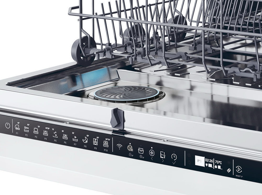 После определения количества грязной посуды блок управления самостоятельно определяет оптимальное количество воды и моющего средства, а также продолжительность стирки для каждого конкретного случая, что позволяет экономить ресурсы, а в конечном счете и средства пользователя. При этом все этапы цикла остаются неизменными: посуда при необходимости будет замачиваться, затем последует основной этап мойки в соответствии с заданной программой, после чего посуда эффективно высушивается. Т