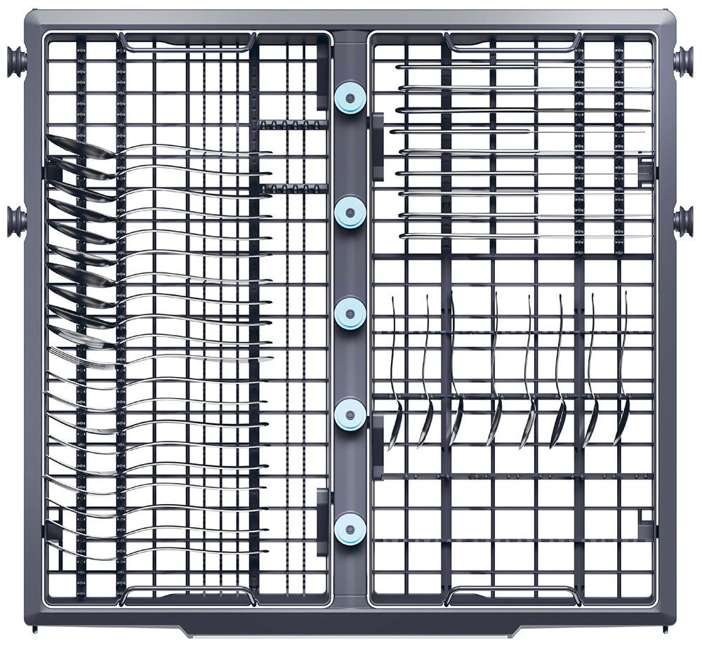Корзина для столовых приборов — один из обязательных аксессуаров, которыми оснащается любая посудомоечная машина. Она представляет собой сетчатый пластиковый органайзер, в котором устанавливаются в вертикальном положении ложки, ножи и вилки. Корзина, как правило, разделяется на отдельные отсеки, в каждый из которых можно поместить один или несколько предметов. Зачастую сверху она закрывается специальной крышкой, которая также служит для разделения приборов, способствуя более тщательному их мытью.